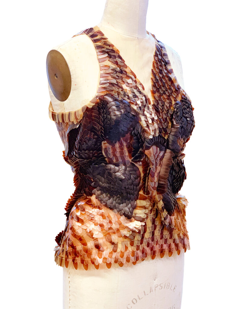 Berangkat dari kepeduliannya dengan isu lingkungan seperti besarnya jumlah limbah industri makanan laut dan kopi di Vietnam, serta risiko-risiko dari penggunaan kulit binatang maupun kulit sintetis pada dunia tekstil dan fesyen, Uyen Tran menemukan jenis biomaterial yang dinamakan Tômtex.