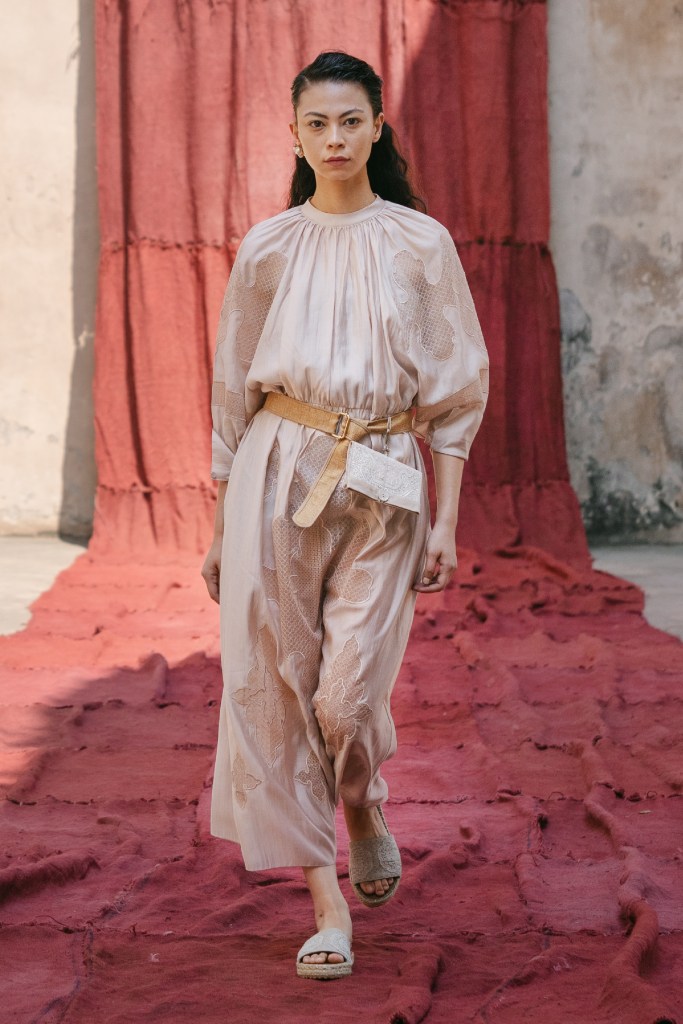 Sepanjang koleksi ini, karakter desain Sapto Djojokartiko beberapa tahun ke belakang yang khas dengan dominasi penggunaan warna-warna ethereal, material seperti organza dan lace, serta detail aplikasi tekstil seperti bordir dan lipit masih kental terlihat. Namun yang sedikit berbeda barangkali adalah minimalnya aplikasi 3 Dimensi seperti payet, yang dilakukan secara intensional oleh Sapto Djojokartiko dengan mempertimbangkan fleksibilitas penggunaan koleksi ini dalam keseharian yang kini banyak dihabiskan oleh masyarakat di rumah. Hal tersebut tidak menjadi penghalang bagi Sapto Djojokartiko untuk tetap menunjukkan detil-detil yang kuat dan elegan dalam koleksinya, dengan diimbangi dengan penggunaan warna-warna gelap seperti hitam dan cokelat, serta cerah seperti coral bahkan kuning yang seperti biasa dipadukan secara harmonis dengan sinergi material serta detil bordir yang kaya akan tekstur. Siluet-siluet dinamis yang membebaskan ruang bergerak bagi pemakainya pun membuat aspek kenyamanan sangat terasa sepanjang koleksi yang terdiri dari busana perempuan maupun pria ini.