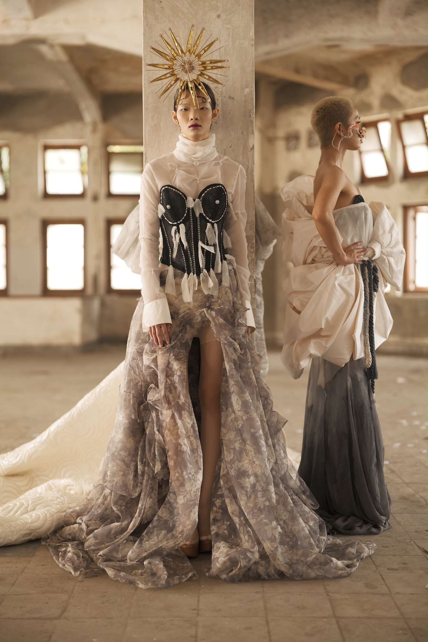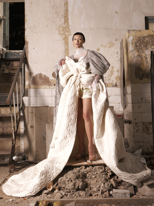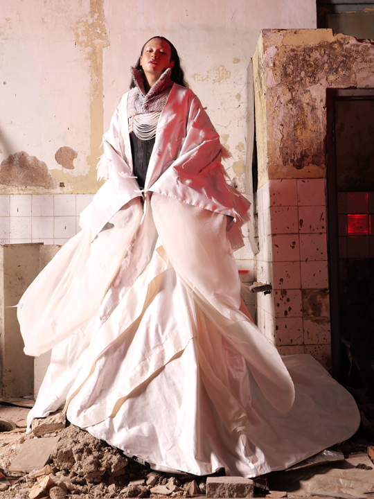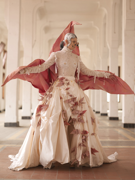 Untuk menghasilkan siluet feminin yang avant-garde, Nila mengacu pada struktur busana pada era Victoria. Terlihat dari penggunaan teknik layering dengan korset disertai dengan luaran yang terlihat megah. Konstruksi gaun yang tegas mencerminkan kekuatan yang penting dimiliki oleh perempuan modern. Hal lain yang menjadi keunikan koleksi ini adalah penyajian detail raw finish dengan memanfaatkan material daur ulang, deadstock, dan makrame. Meski demikian, ilusi yang terlihat “kasar” ini dielevasi dengan memadukan kain sutra, satin, organdi, dan sifon yang dikreasikan menggunakan teknik draperi sehingga menghasilkan kesan ringan dan halus. Batu swarovski pun disusun dan dijahit mengikuti kontur gaun sehingga membuat koleksi ini terlihat lebih eksklusif. Untuk kedepannya, Nila mengaku ingin lebih mengarahkan label binaannya ini sebagai label yang memiliki ekspertise di bidang bridal.