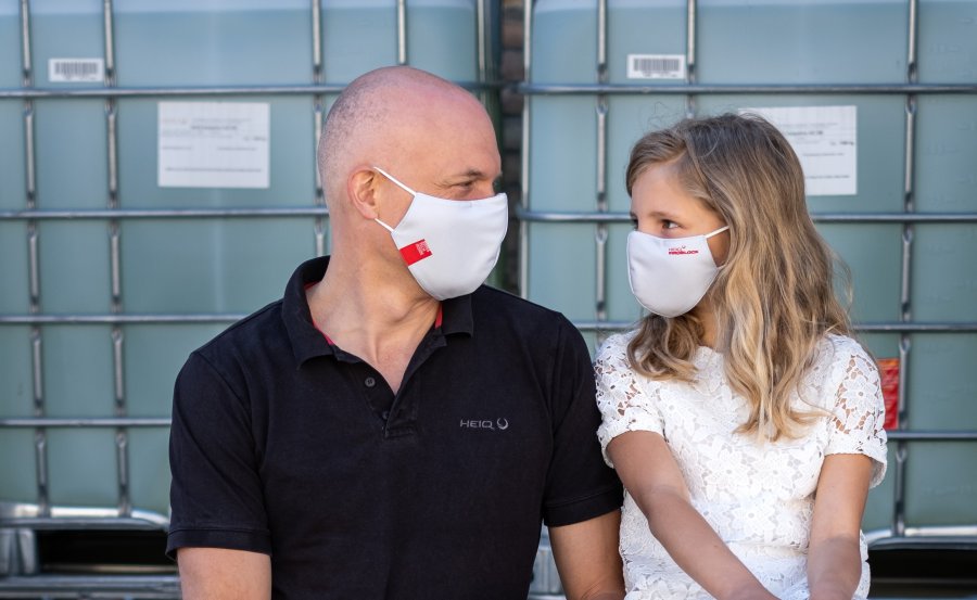 Carlo Centonze, CEO serta salah satu pendiri dari HeiQ, bersama putrinya mengenakan masker dengan teknologi HeiQ Viroblock.