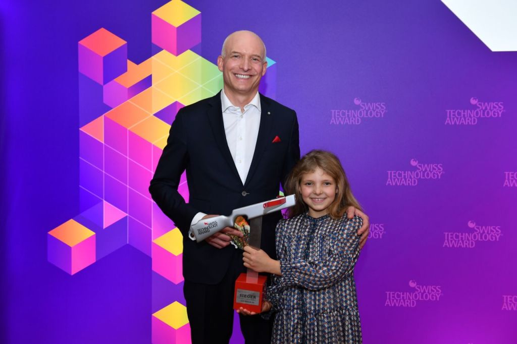 Carlo Centonze dan putrinya pada acara penghargaan Swiss Technology Award 2020. (Foto: Dok. HeiQ)