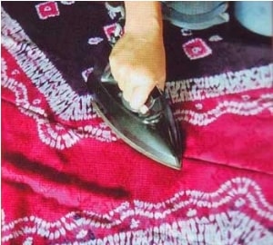 Pewarnaan juga dapat dilakukan menggunakan 3 teknik, pencelupan biasa apabila hanya menggunakan satu warna, pencoletan ketika menggunakan lebih dari satu warna, dan gabungan keduanya. Setelah diwarnai, jahitan jelujur pada kain kemudian dilepas, dicuci, dan dikeringkan.