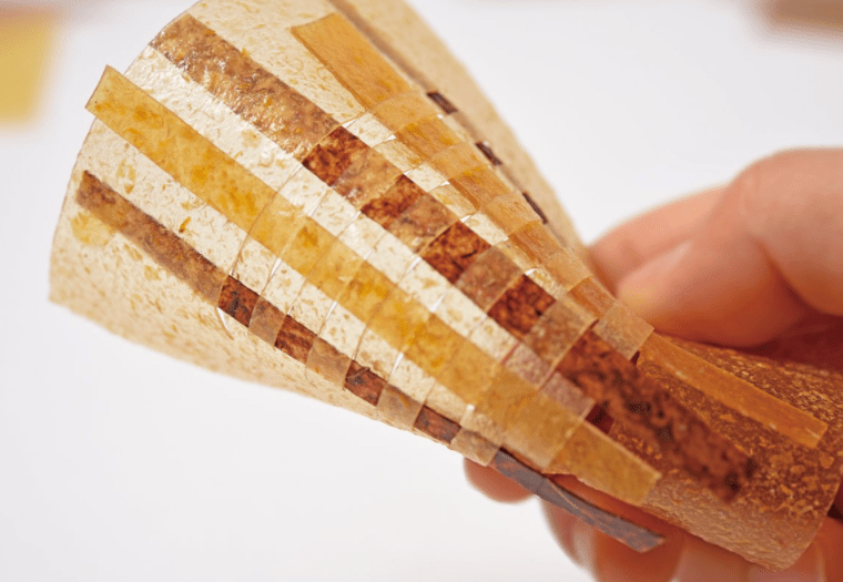 Cairan tersebut kemudian dibentuk menjadi lembaran menyerupai material kulit yang dapat diwarnai menggunakan pewarna alam. Setelah diwarnai, lembaran tersebut pun dapat dipotong menggunakan laser ataupun dibentuk dengan pencetak 3D ke dalam ukuran serta bentuk yang berbeda-beda.