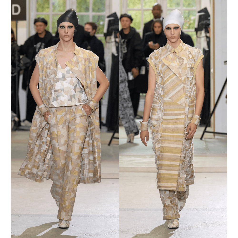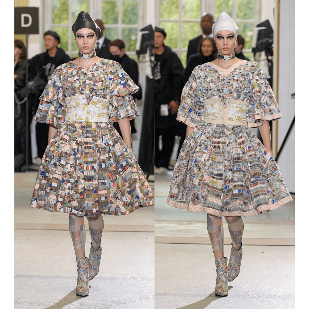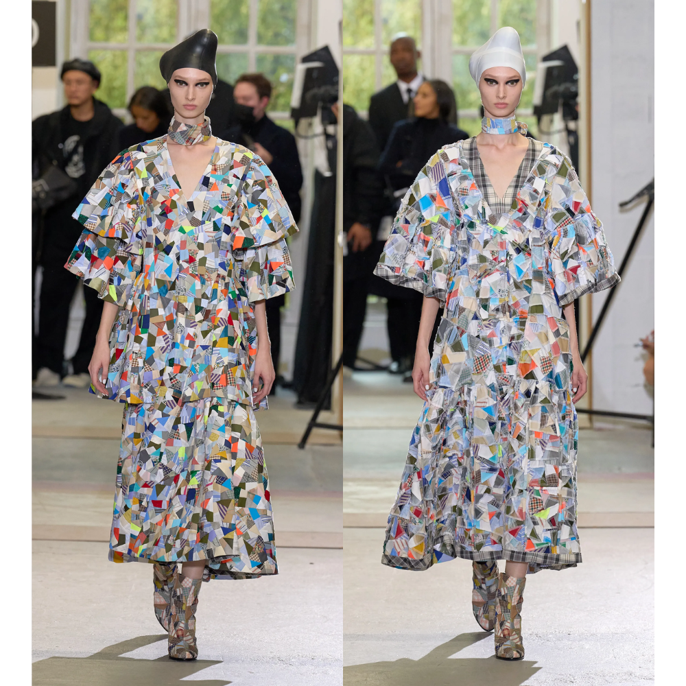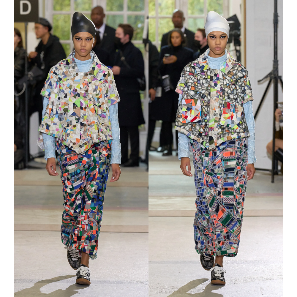 Pada koleksi terbarunya di musim Spring/Summer 2023 ini, Kunihiko Morinaga kembali meluncurkan koleksi yang menakjubkan: sebuah koleksi yang menggunakan teknik khas Anrealage, patchwork, kreasi menjahit potongan-potongan kecil kain perca menjadi selembar kain. Teknik ini memang terbukti telah menjadi ciri khas yang membawa Anrealage ke dalam kesuksesan sejak diluncurkan pada tahun 2003. Penggunaan teknik patchwork telah nampak di berbagai koleksi Anrealage sebelumnya, seperti halnya pada Fall 2011, Fall 2013, dan Spring 2022.